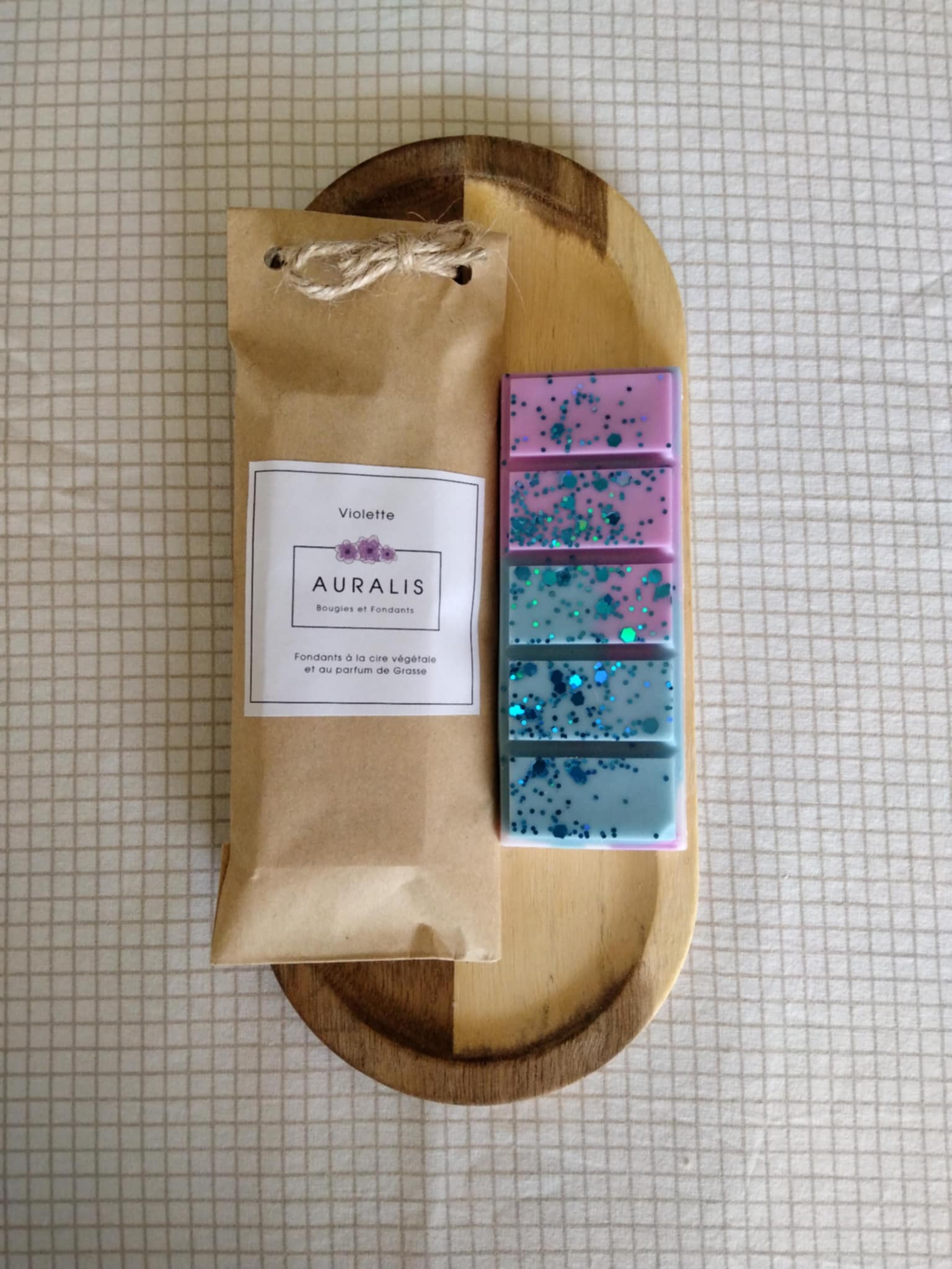 Composition : Cire de soja, parfum (7%), colorants.
